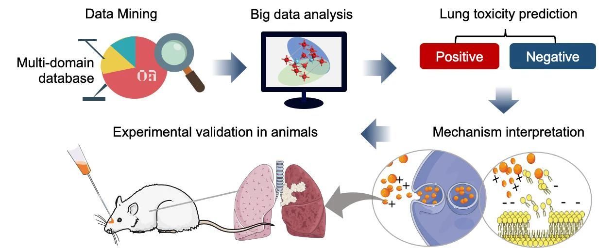 随着纳米科技的发展,工程纳米材料进入环境中并通过呼吸暴露于人类。一些纳米金属氧化物已被证明会在哺乳动物体内引起显著的肺毒性。计算模拟分析(in silico analyses)已经在化学品风险评估的很多领域得到广泛应用。然而,由于工程纳米颗粒(ENMs)在多种纳米生物界面上的生物作用较为复杂,预测其在体内诱发的慢性毒性仍然面临诸多挑战。为了解决这一问题,本研究开发了基于机器学习的IVIVE毒性预测框架,通过汇总和分析已发表的关于金属氧化物纳米体内肺毒性的实验数据,揭示体外到体内毒性外推(IVIVE)关系。