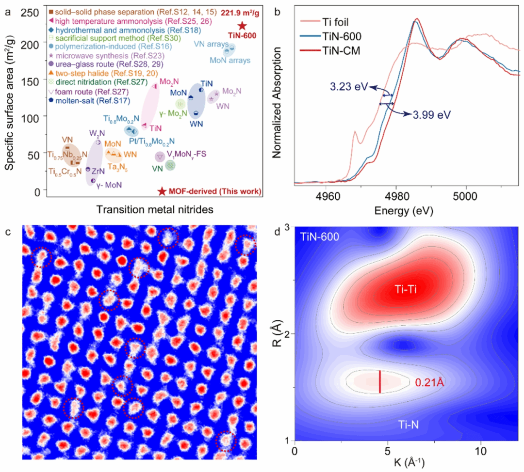 图1. 基于MOF衍生的具有丰富NVs的高比表面积TiNx