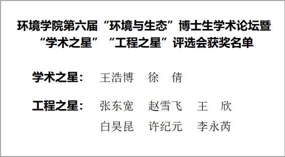 评审结束后的颁奖仪式由学院党委副书记兼副院长窦智主持,万年红、崔焱等专家分别进行了精彩点评。专家们对参赛选手的创新成果给予了高度评价,称赞他们在学术研究和工程实践中展现出的创新思维与专业能力。同时,鼓励同学们要心怀远大梦想,在更广阔的平台上充分施展才华,不断追求卓越。随着评选结果的揭晓,3044am永利集团3044noc第六届“环境与生态”博士生论坛暨“学术之星”“工程之星”评选会圆满落幕。