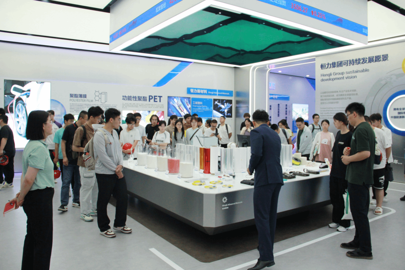 在恒力新材料展厅,学员们近距离观摩了集团的前沿科技成果。其中,恒力极细纤维以其卓越的性能令人惊叹 —— 一千克纤维可绕地球赤道一圈,展现了企业在高端新材料领域的领先实力。此外,展厅还展示了恒力在可降解材料、高性能聚酯等领域的创新成果,彰显了科技赋能可持续发展的企业路径。