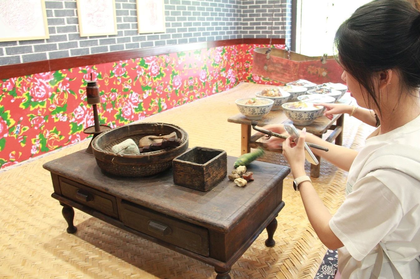 在满族文化展馆内,学员们循着 “满族赋” 的历史脉络,追溯了从肃慎部落到现代满族的生态智慧演进。展馆通过文字、影像与音频解说系统,生动展现了各历史阶段对自然的适应之道:肃慎 “护矢” 弓箭的狩猎文明体现资源适度利用理念,靺鞨族渤海国石灯塔融合建筑美学与自然材质,而 “口袋房”“万字炕” 等民俗建筑更是先民应对严寒气候的生态设计 —— 侧门入深的口袋房减少热量流失,U 型万字炕实现空间与热能的高效利用,“窗户纸糊在外” 的技法则巧妙规避室内水汽侵蚀,这些细节让学员们深刻体会到 “顺应自然” 的生存哲学。