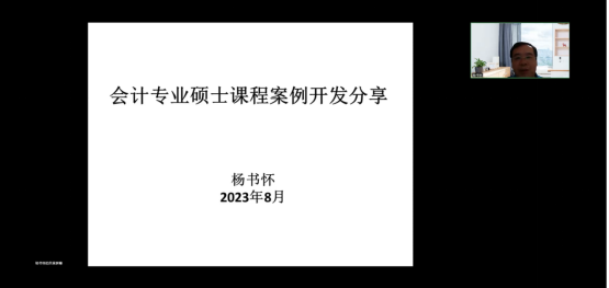 进一步地,基于全国MPAcc教学案例库入选案例,杨教授为参会老师分享了有关课程案例开发的写作方法、技巧和注意事项,并将其案例开发经验总结为以下几点:以学位论文的深度和标准衡量案例质量;案例目的深刻反映理论与实务存在问题;内容以小见大,深挖理论与实务的契合点;只有自己深入实践,才能做到深入人心。在自由交流环节,参会老师与杨教授就会计专业硕士课程案例开发进行了更深入的讨论。至此,本次会计博士论坛活动圆满结束。