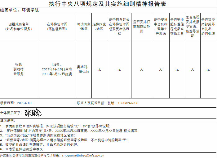 会议期间,张晗副教授参加了多场学术分会,包括“Environmental and Human Toxicology: From Molecules to Organisms, From Omics to in Vivo”、“Environmental Chemistry and Exposure Assessment: Analysis, Monitoring, Fate and Modelling”以及“Ecological and Human Health Risk Assessment of Chemicals, Mixtures and Stressors and Risk Mitigation Strategies”等,全面了解了当前环境毒理与污染物研究的前沿进展。张晗副教授还在会议上进行了墙报展示,介绍了其团队在体外毒性筛查及转运蛋白调控机制方面的最新研究成果,受到了与会专家的广泛关注和积极反馈。此外,张晗副教授会议期间严格执行中央八项规定,见下图。