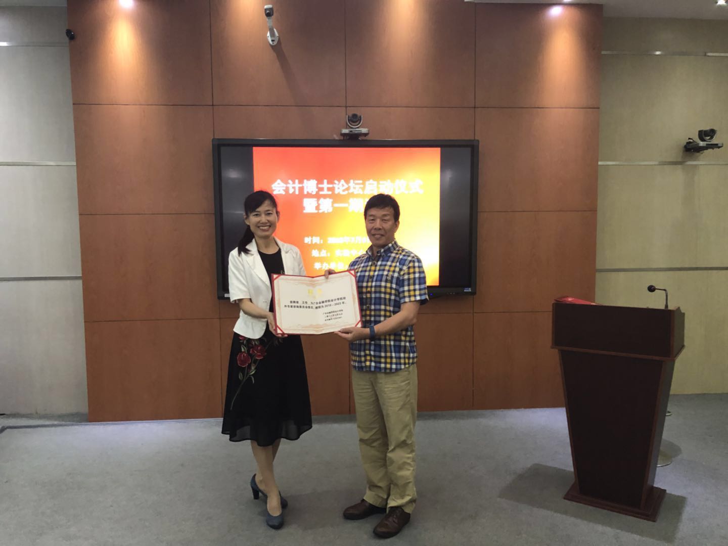 taptap点点体育院长文芳教授主持仪式。穆书记首先进行了热情洋溢的致辞,对老校长王华教授重回母校表示热烈欢迎,对会计博士论坛成功举办表示祝贺;希望论坛能立足学科,深耕行业,办出特色,办出影响,力争把论坛办成各学科互相融合、校内外学者共同参与的高端学术平台。穆书记亲自为老校长王华教授颁发了客座教授聘书。