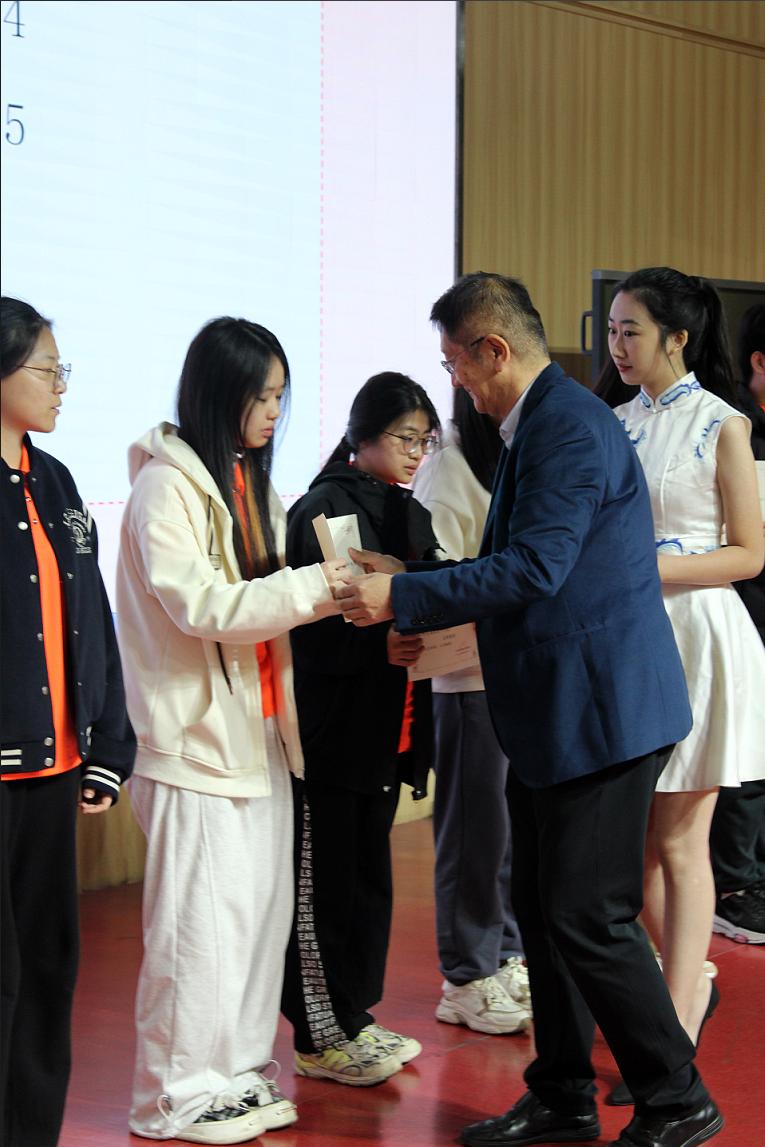 在主席台就坐的领导和老师为获代表颁奖。