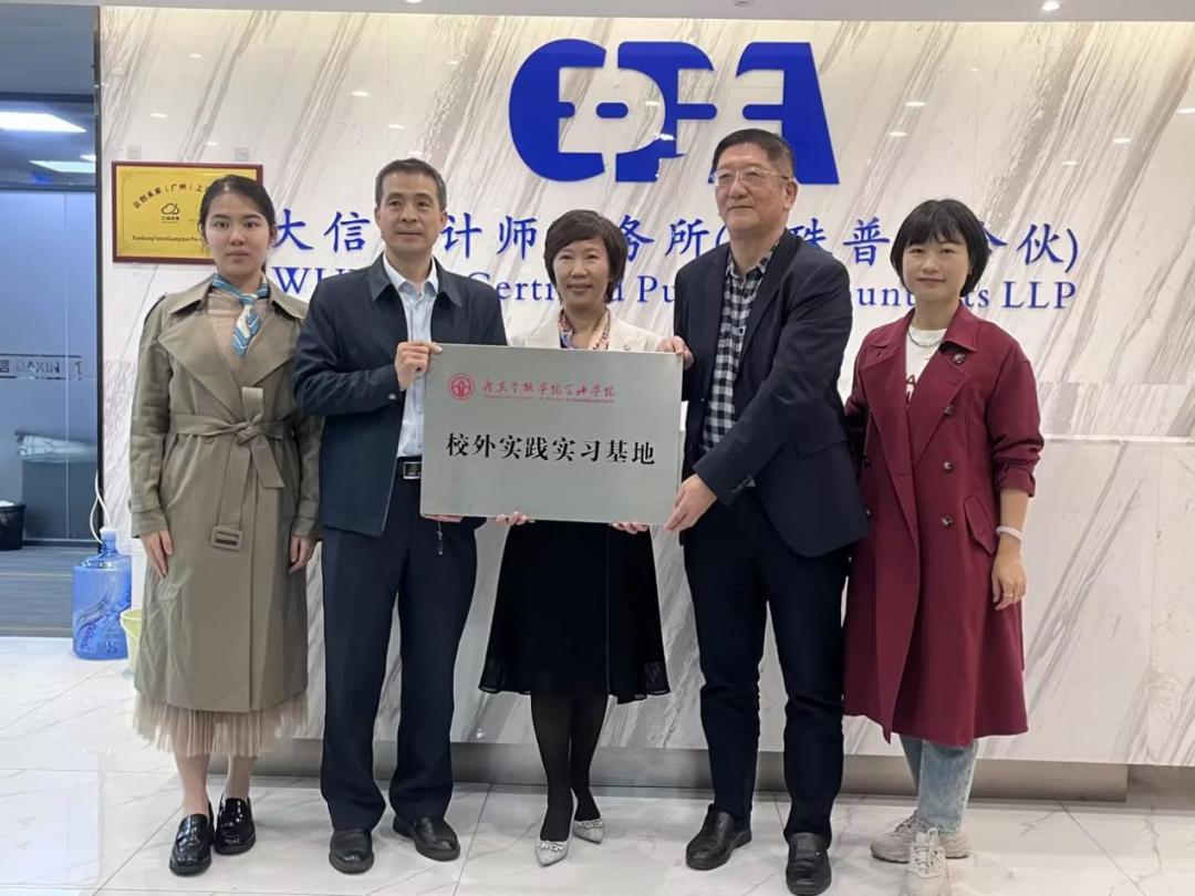 大信会计师事务所(特殊普通合伙)广州分所于2012年12月20日成立,在财会专业服务行业深耕十多载。业务范围涵盖上市企业审计,上市策划、IPO辅导,会计报表审计、商业移民财务审计、项目可行性研究、企业战备研究、企业制度诊断及调整、企业经营诊断及调整、营销模式可行性研究、企业投资、融资策划、财务管理咨询、税务策划、企业绩效评价、工程预决算审核、验资等全方面审计、税务和咨询服务。该所每年需要实习生200多名,每年新招工作人员20多人。院企双方就本科生、研究生来事务所实习和未来就业等问题达成共识。