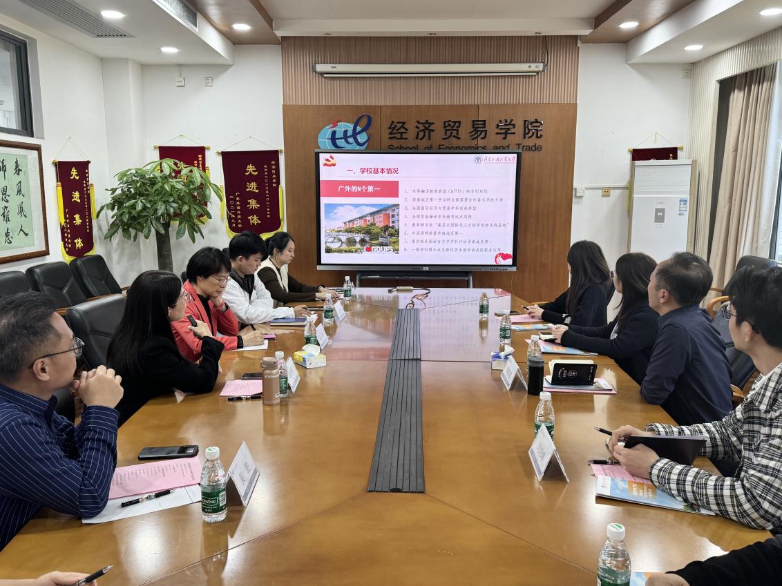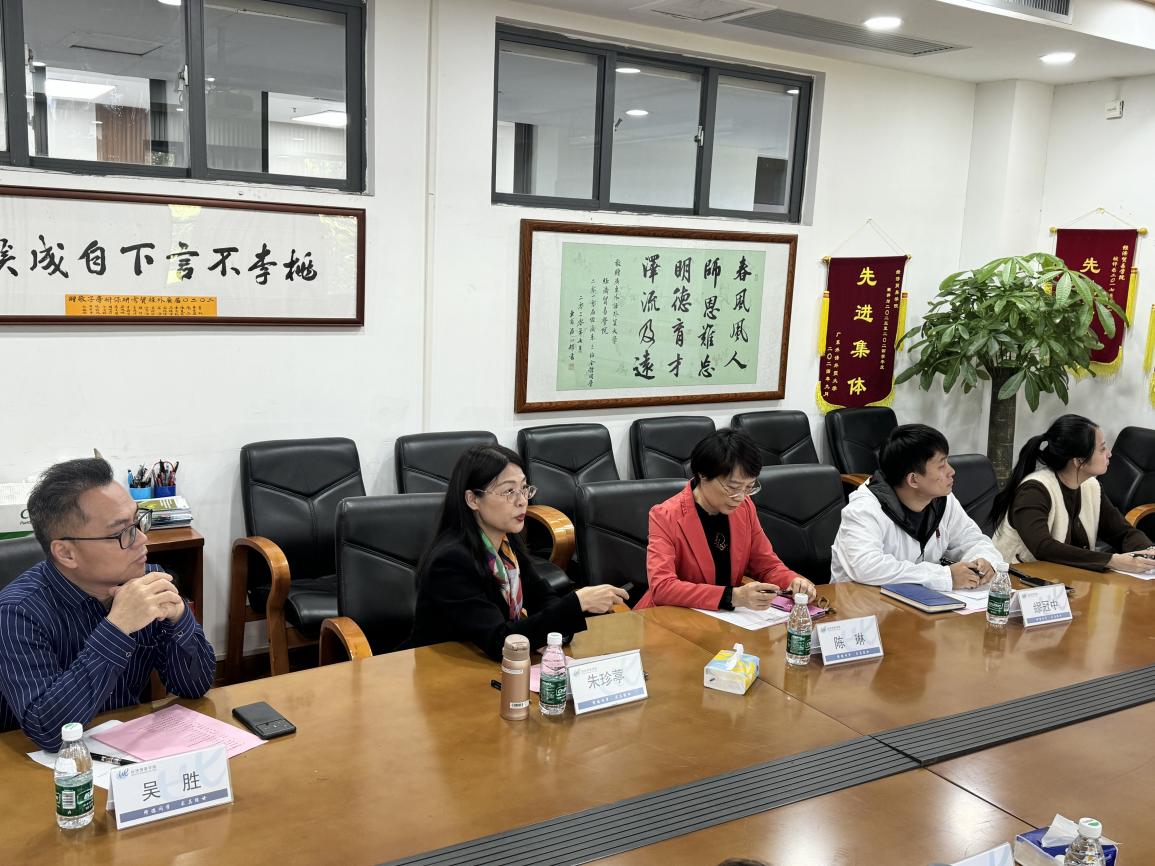 在座谈交流环节,双方围绕党建党务工作、学生管理工作、国际人才培养以及实践教学等核心议题进行了深入探讨。朱珍葶书记详细阐述了经贸学院的党建党务工作情况,缪冠中老师则就学生实习就业的具体工作进行了介绍。陈琳老师分享了国际人才培养的宝贵经验,而曾嘉琪老师则通过具体案例,展示了经贸学院品牌项目——国际化名企实习实训项目的成效与亮点。双方教师代表进行了交流讨论,现场气氛热烈而融洽。