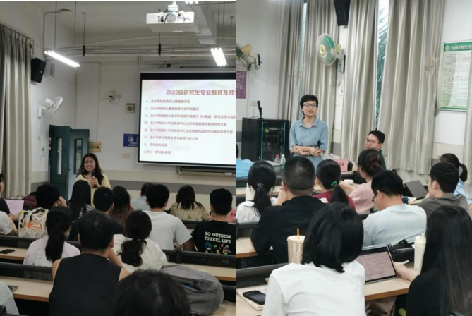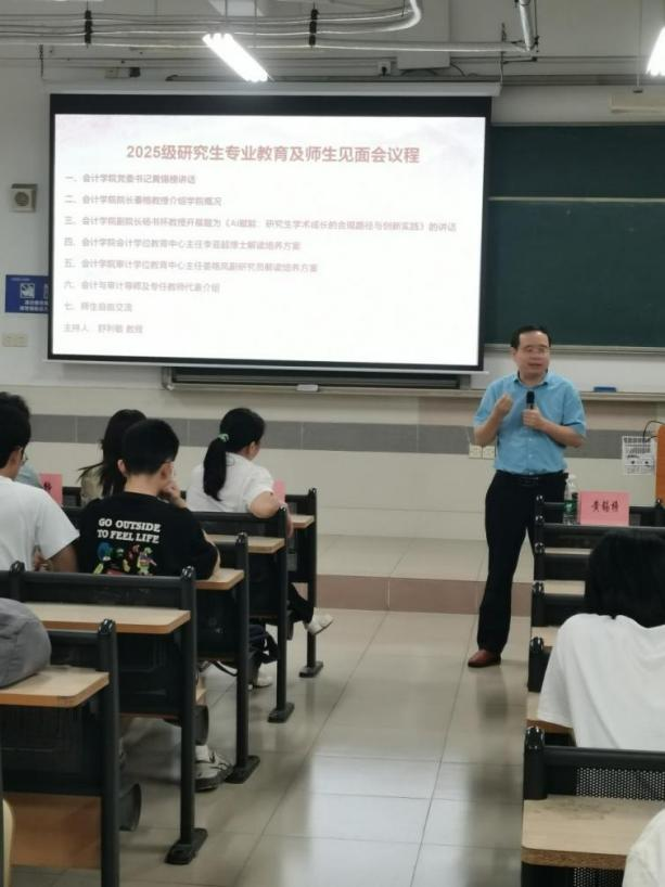 昂首阔步新起点,金秋筑梦正当时。在这个充满收获和希望的季节,taptap点点体育迎来2025级研究生入校。为帮助2025级研究生顺利完成角色转变、尽快适应研究生学习生活,taptap点点体育于2025年9月16日下午在北教B404举行2025级硕士研究生专业教育大会暨师生见面会。会议由taptap点点体育副院长舒利敏副教授主持,学院领导、研究生导师代表、任课教师代表及2025级全体会计硕士和审计硕士研究生参会。