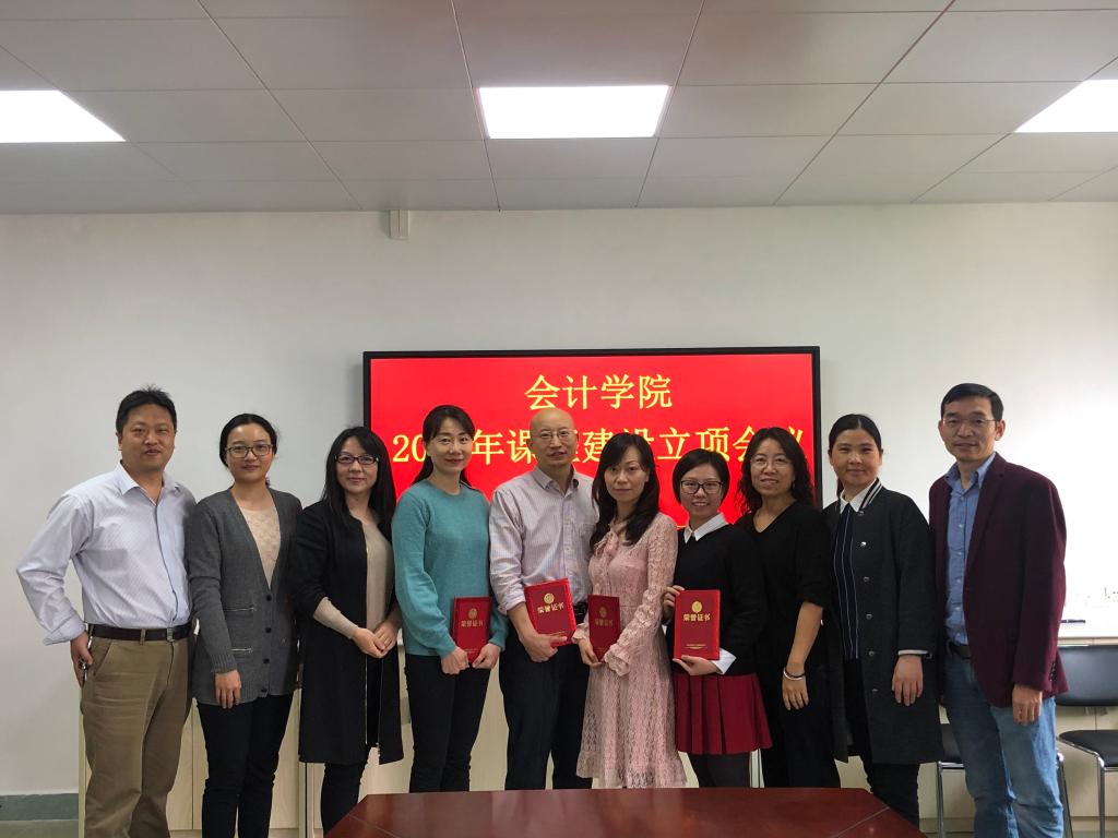 2019年12月31日上午,课程建设立项会议在学院会议室召开。文芳院长、马鹏副院长、舒利敏副院长、赵剑锋主任、易茜主任、廖菁华老师以及各位课程负责人出席了会议。马鹏副院长首先介绍了课程建设项目立项过程。自学院选拔第一批课程负责人以来,《会计学原理》、《财务会计》、《中级财务会计》、《高级财务会计》等课程负责人认真撰写课程建设项目书,经过反复修改后定稿,并经学术委员会审核、党政联席会审批通过后正式立项。文芳院长对各课程顺利立项表示祝贺,希望各位课程负责人按照课程建设项目书内容要求,认真做好课程建设,为学院教学质量提升做出贡献。文芳院长为各位课程负责人现场颁发了课程立项证书并合影留念。