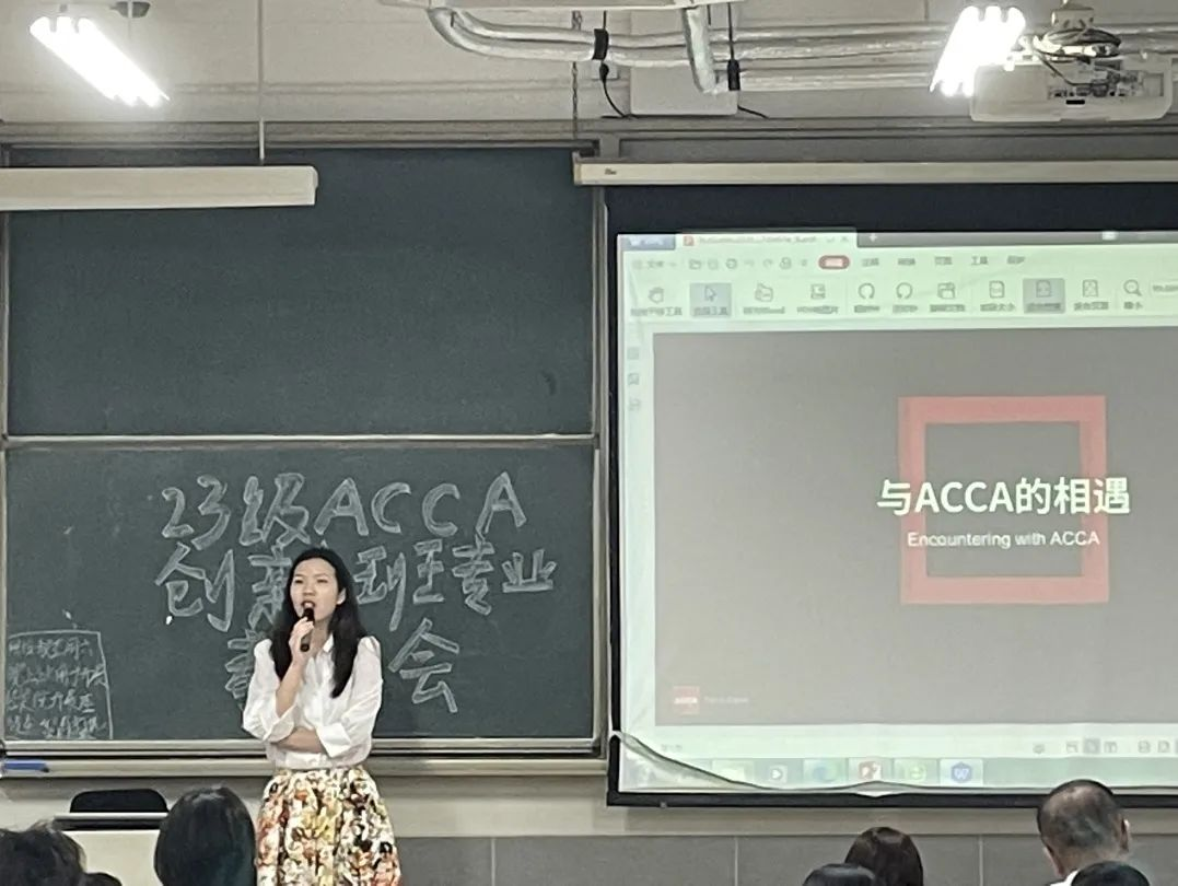 ACCA资深会员刘女士从“ACCA是什么”和“为什么选择ACCA”两个方面向同学们讲述了自己与ACCA相遇相识相知的故事,并结合自己在会计事务所实习的经历,介绍了ACCA给予我们的机遇和多样性,强调作为会计人员职业道德的重要性,并鼓励同学们多走出去,多去尝试,享受美好的大学时光,勇敢追逐梦想,大放异彩。