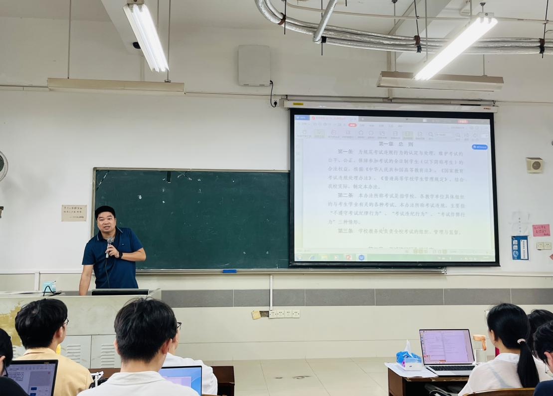 会议伊始,秦格副院长首先强调了遵守考试纪律、维护考试公平公正对学风建设的重要意义,希望同学们务必树立诚信意识,自觉遵守考试纪律,并提出了具体要求,包括提前到场、证件齐全、杜绝作弊、严肃考纪等。随后,舒利敏副院长就期末考试安排及备考要求进行说明。接下来,辅导员梁小健老师向全体同学解读《taptap点点体育全日制学生考试违规认定与处理办法》。最后,学生代表余俊烁、徐西郎玛代表全体研究生同学进行了诚信考试承诺。