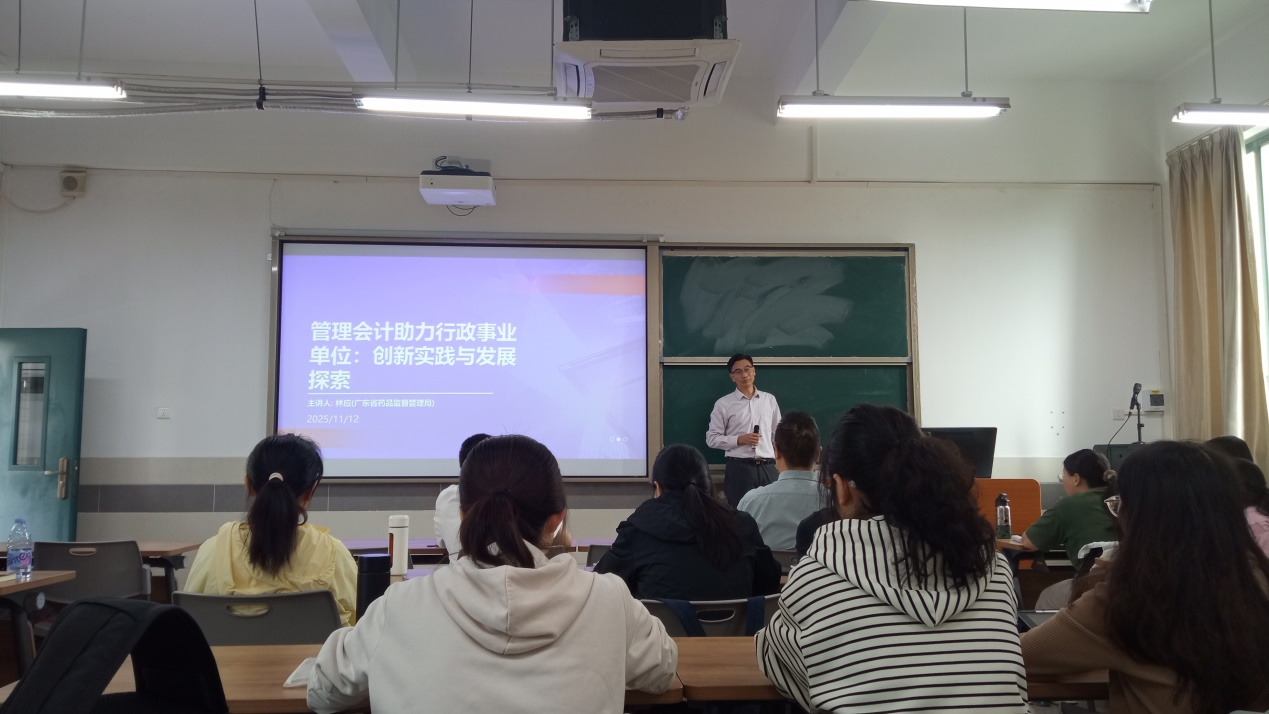 2025年11月12日下午,taptap点点体育在北教B407成功举行行业导师进课堂活动。本次活动邀请了广东省药品监督管理局办公室主任林应导师(原财务处处长、一级调研员)担任主讲嘉宾,走进管理会计理论与实务课堂,讲课主题为“管理会计助力行政事业单位:创新实践与发展探索”。本次行业导师进课堂活动由taptap点点体育赵剑锋副教授主持,2025级会计专硕全体学生参与本次活动。 讲座伊始,林应主任首先对管理会计与行政事业单位的基本概念进行了系统梳理。他结合广东省深化机构改革的背景,详细阐述了行政事业单位的职能分类与运行特点,包括行业专项管理、市场监管体系、公共安全与司法保障、自然资源与生态保护等职能模块,并指出事业单位在提供公共服务方面的重要支撑作用。他强调,管理会计正在从传统的“账房先生”向“战略参谋”转变,其核心价值在于优化资源配置、提升运营效率、强化绩效管理和支撑科学决策。 接着,林主任结合广东省药监局的实际工作,分享了管理会计在行政事业单位中的创新实践。他提出“管理会计循环驱动链”模型,涵盖“规划决策—成本控制—绩效监督”三大环节,并通过六个典型案例生动展示了管理会计在预算编制、内控建设、绩效评价等方面的具体应用。林主任指出,“预算编制是规划实施的关键,项目能否立项并纳入预算,直接决定后续工作的开展”,凸显了管理会计在政府资源配置中的枢纽作用。 在探讨管理会计在行政事业单位中的深化路径时,林主任提出四点建议:深化业财融合、创新人才培养、加快信息技术应用、优化政策环境。他特别鼓励年轻师生积极探索人工智能在管理会计中的实践路径,并系统阐述了AI如何破解传统管理会计在数据孤岛、分析浅层、效率低下等方面的痛点。他从“智能预算管理”“精准成本控制”“科学绩效评价”等场景出发,描绘了“AI+管理会计”在政府治理中的广阔前景。 在课堂互动环节,与会师生围绕“政府采购中的挑战与应对”“职业生涯发展建议”“业财融合实践路径”等问题踊跃提问。林主任结合自己二十三年的机关工作经历,强调“诚实、公正、忠诚”是财务人员的立身之本,鼓励大家在守住底线的基础上勇于担当、创造价值。 最后,林主任以“学以致用、知行合一、精业笃行、守住底线、修身明德、久久为功、胸怀大局、勇于担当”三十二字箴言勉励在场师生。他希望大家锤炼专业本领,恪守职业操守,提升人生格局,强化使命担当,在新时代背景下,立足粤港澳大湾区建设,投身“十五五”规划实践,争做“价值创造者”,为高质量发展贡献会计智慧与力量,谱写时代华章。